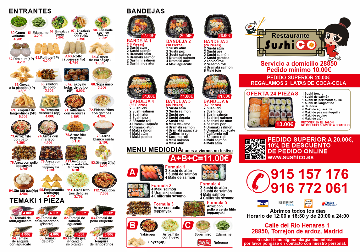 Restaurante Sushi Co in Torrejón de Ardoz offers an authentic Japanese dining experience that shines through its diverse and fresh menu. Known for its speedy service and consistent quality, this sushi and temaki spot stands out as a local favorite. The menu features irresistible starters like Arroz Frito Tres Delicias and comforting Sopa Miso, perfect to whet your appetite. Their sushi creations are complemented by classic sauces, including soja, wasabi, and spicy variants, enhancing the authentic flavors. Pair your meal with refreshing Japanese and Spanish beers such as Cerveza Kirin or Mahou Clásica, balancing the dishes perfectly. What truly sets Restaurante Sushi Co apart is the quality and freshness of the fish, praised by regulars who highlight quick deliveries and friendly service. Whether you crave a quick takeaway or a flavorful dive into Asian cuisine, this spot never disappoints, embodying the essence of fast yet genuine Japanese food.